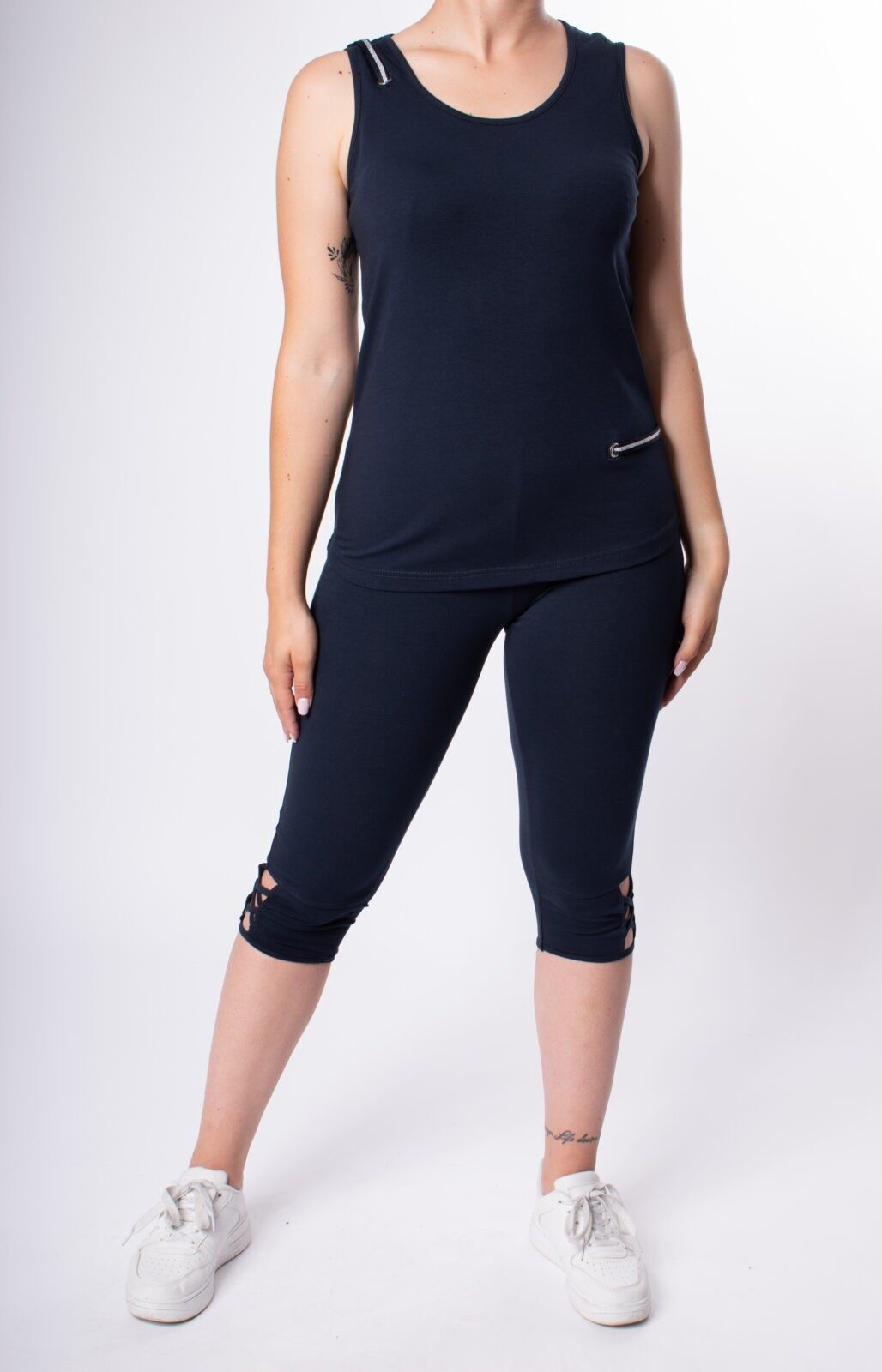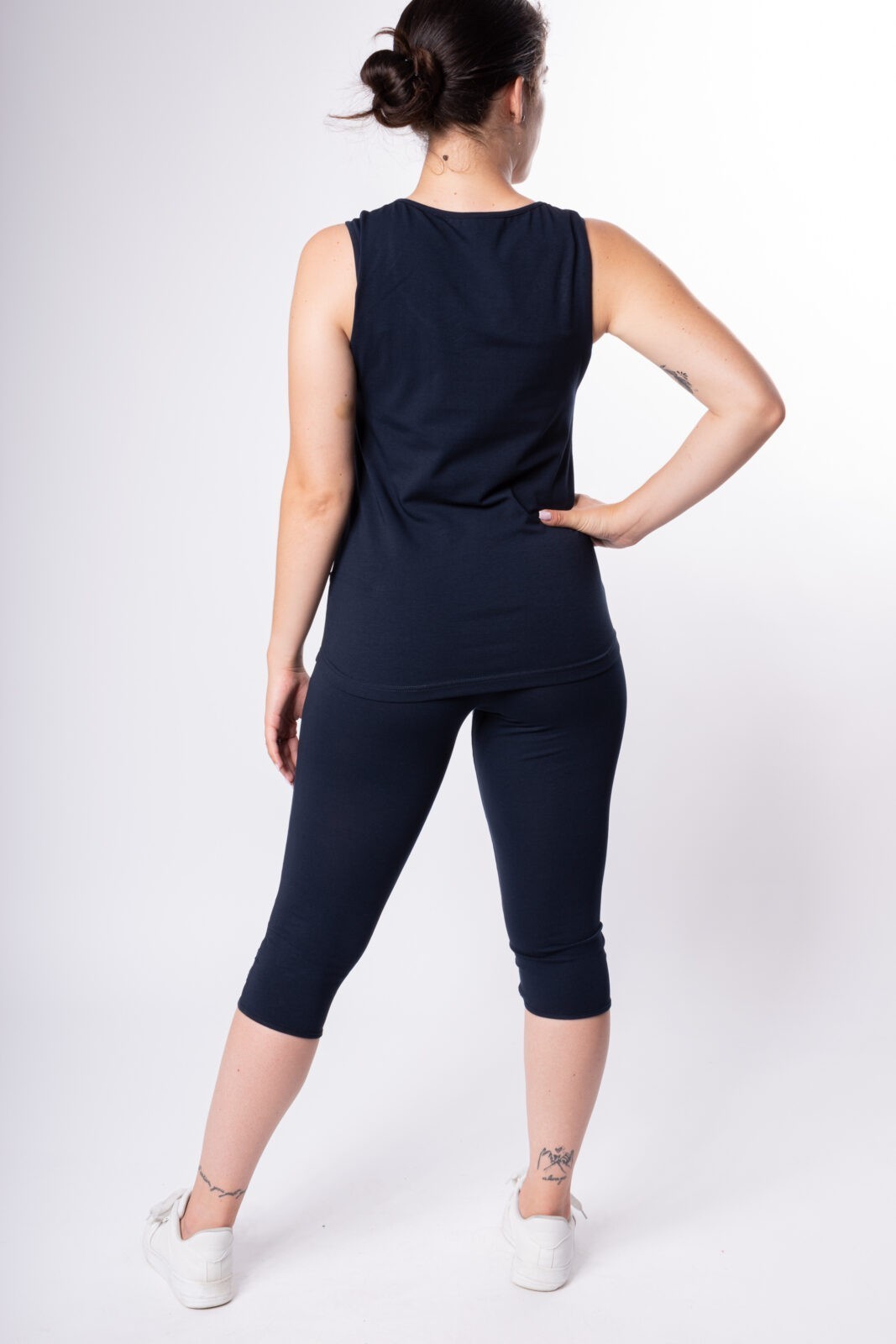 Pamučne tajice Kara 3/4 u plavoj boji. Imaju visok struk, izrađene su od ugodnog materijala, udobne i elastične. Tajice imaju na vanjskoj strani obje nogavice dodane trakove koji su međusobno prekriženi, što im daje poseban izgled. Možete ih nositi svakodnevno, možete ih kombinirati uz tuniku ili majicu. Pamuk je prirodno, snažno vlakno koje dobro upija vlagu. Pamuk diše, mekan je na dodir i ne stvara statički elektricitet. Odjeća od pamuka je hipoalergena i ne iritira kožu. U manjoj količini pamuku je dodan elastan koji daje našoj odjeći elastičnost. SASTAV: 92% pamuk, 8% elastan
