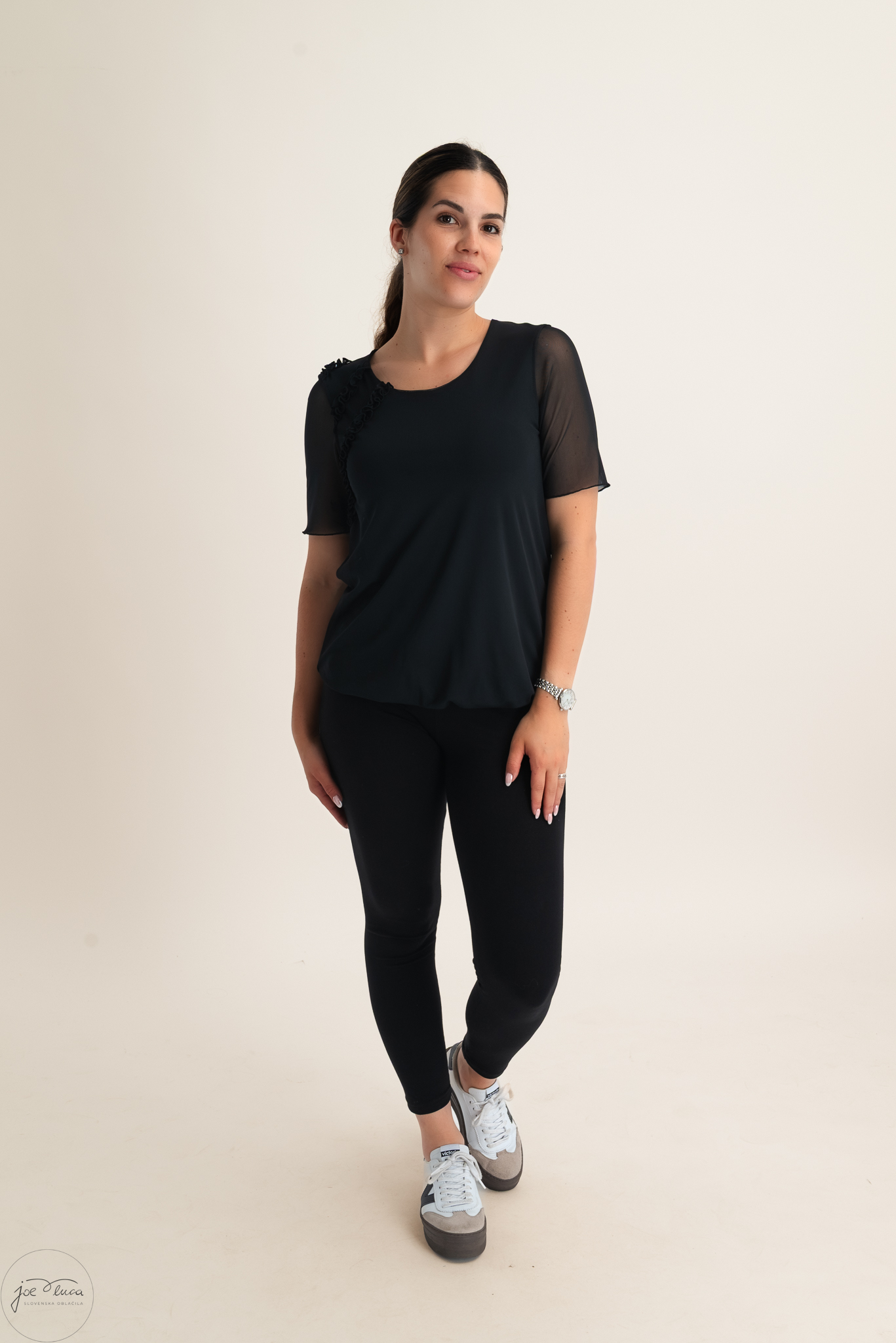 • Model na slici visok je 166 cm i nosi veličinu 38 (veličine odgovaraju stvarnim mjerama)