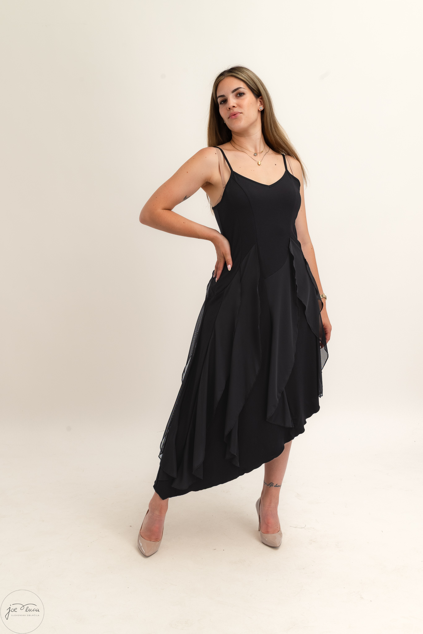 • Haljina lijepo pada i prati liniju tijela (gore lagano pripijena, prema dolje se širi)