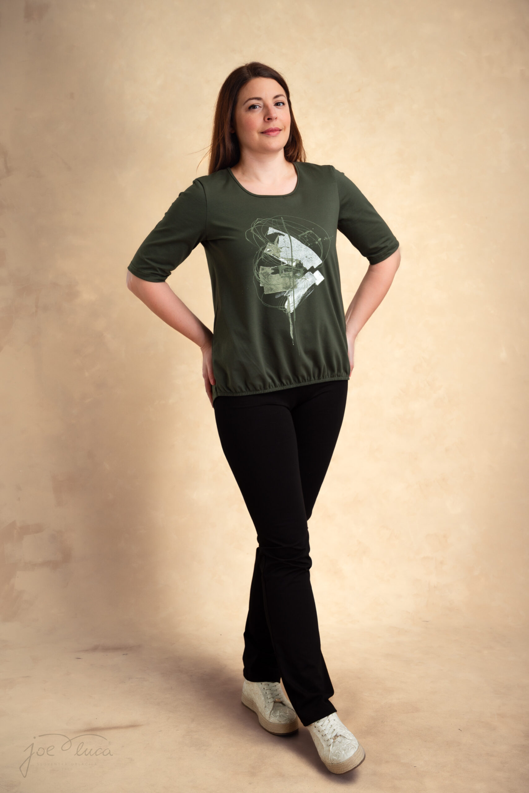• Model na slici visok je 173 cm i nosi veličinu 40