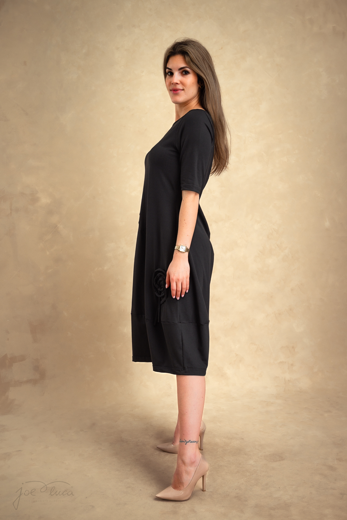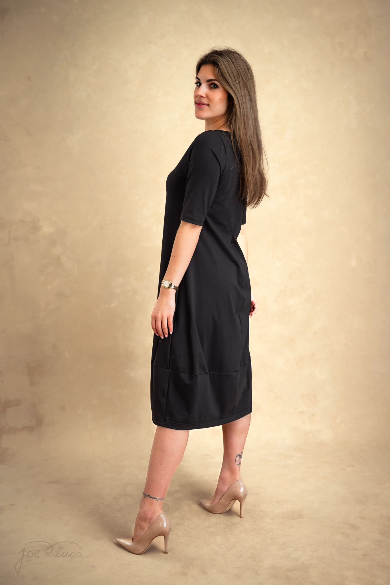 • Haljina je šireg kroja, pa je veličina 36 prikladna i za 38 ili 40, ovisno želite li da bude šira ili pripijenija