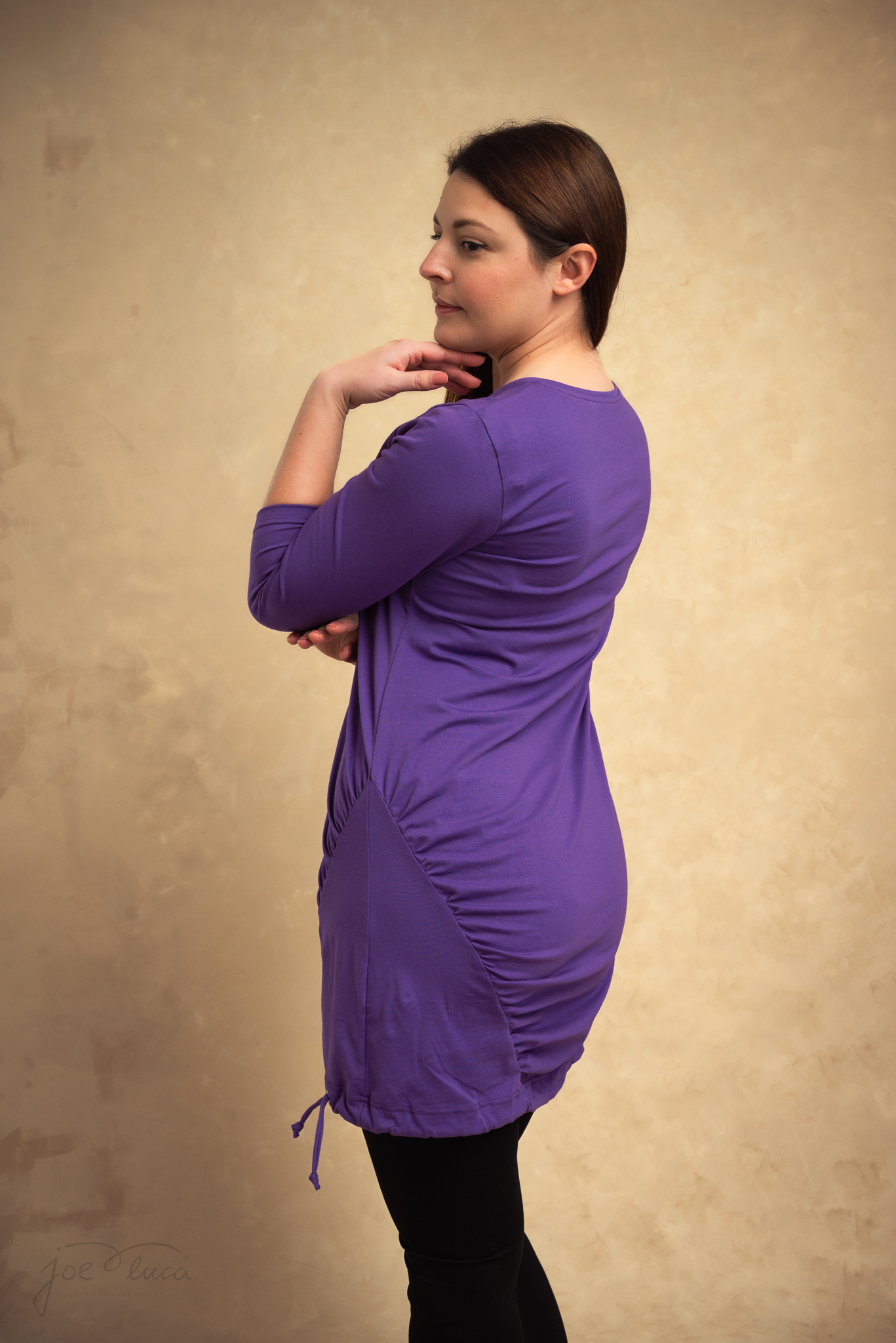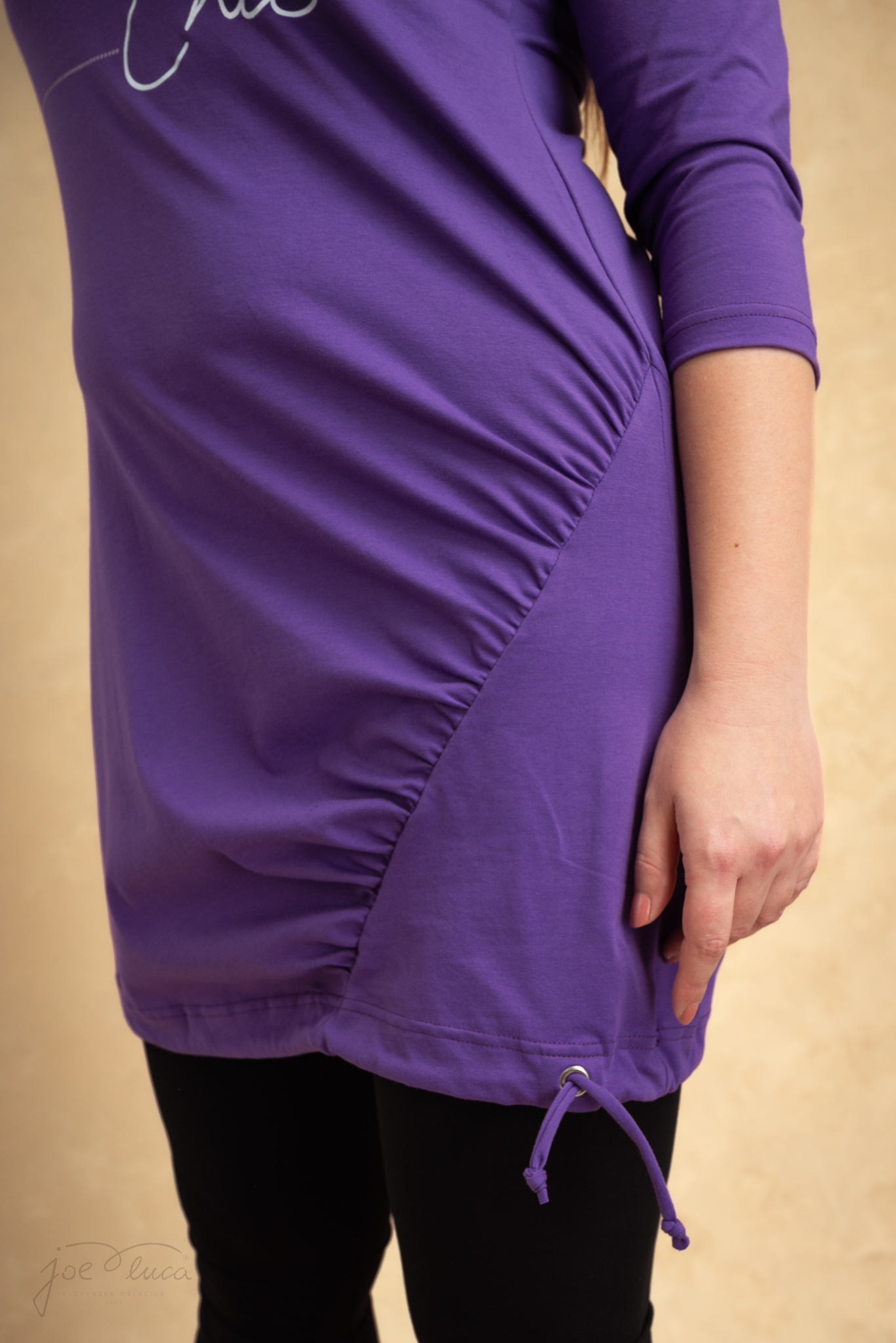 • Sa strane dolje rezana i opremljena vrpcom, kojom tuniku možeš skupiti po želji