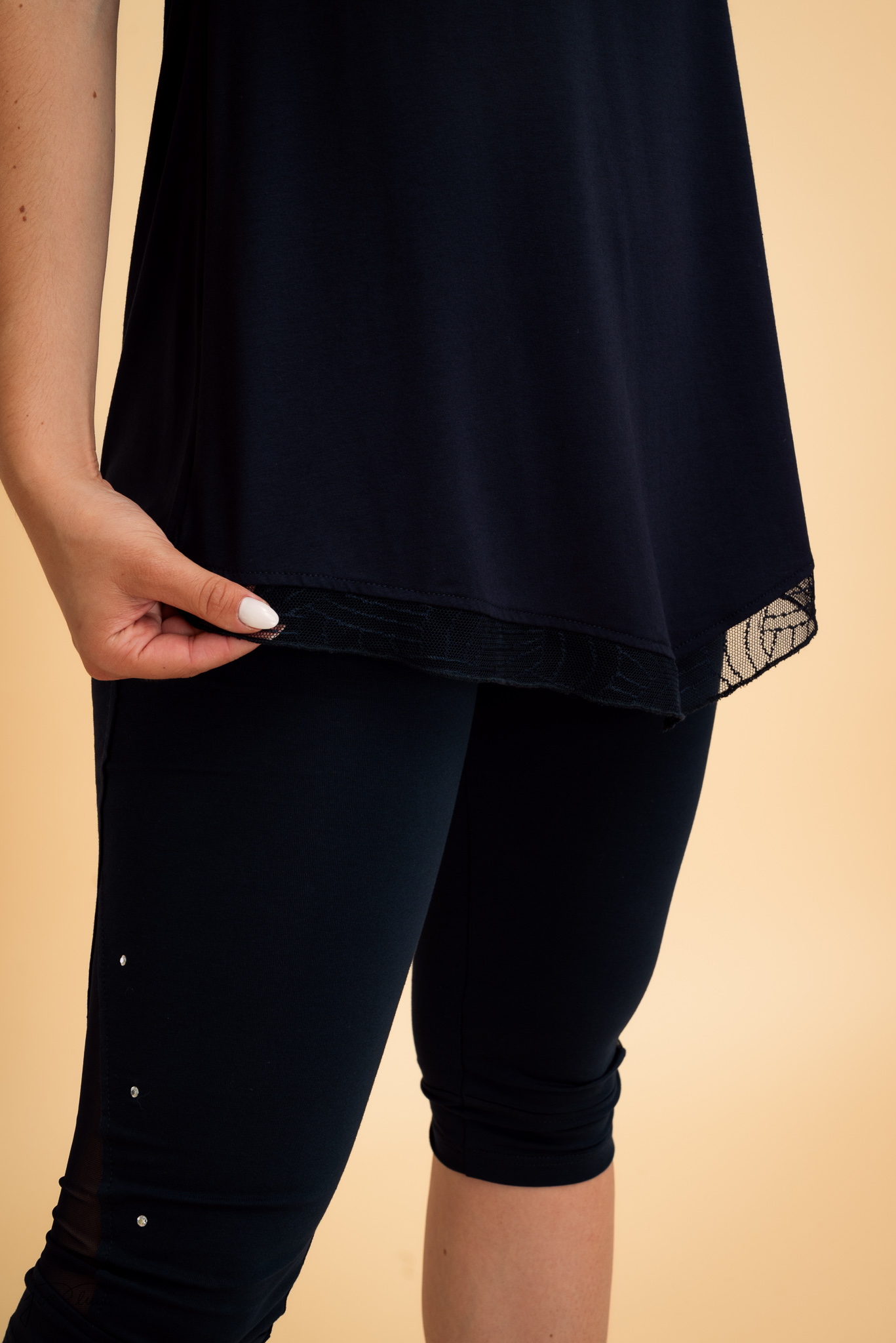 • Rubovi tunike obrubljeni su nježnom čipkom koja tunici daje elegantan i profinjen završetak.
